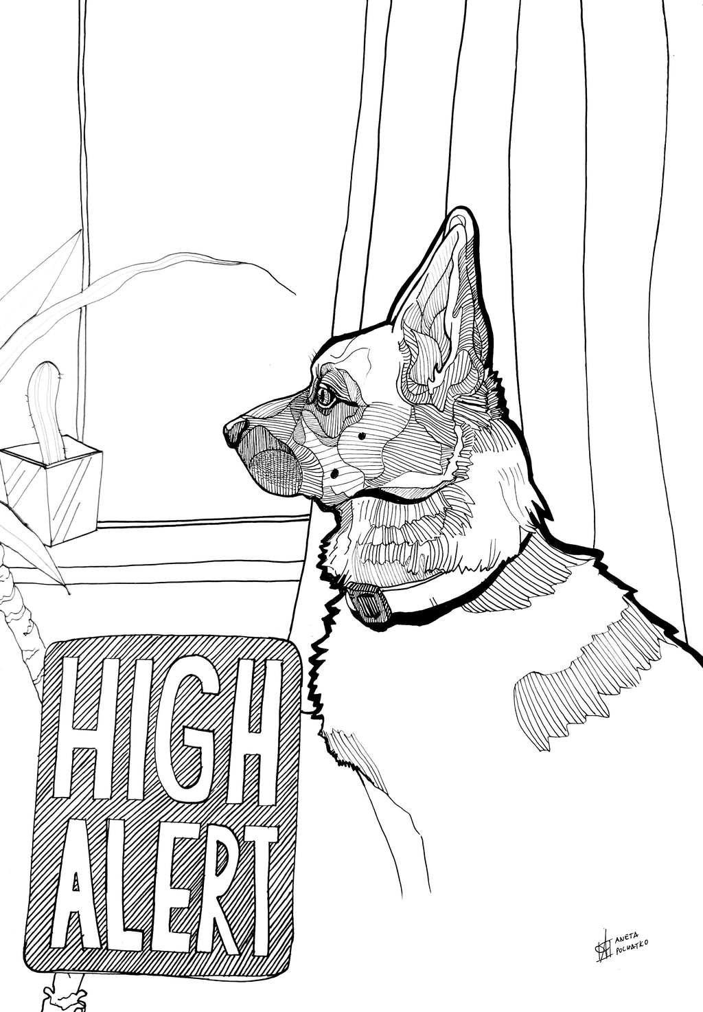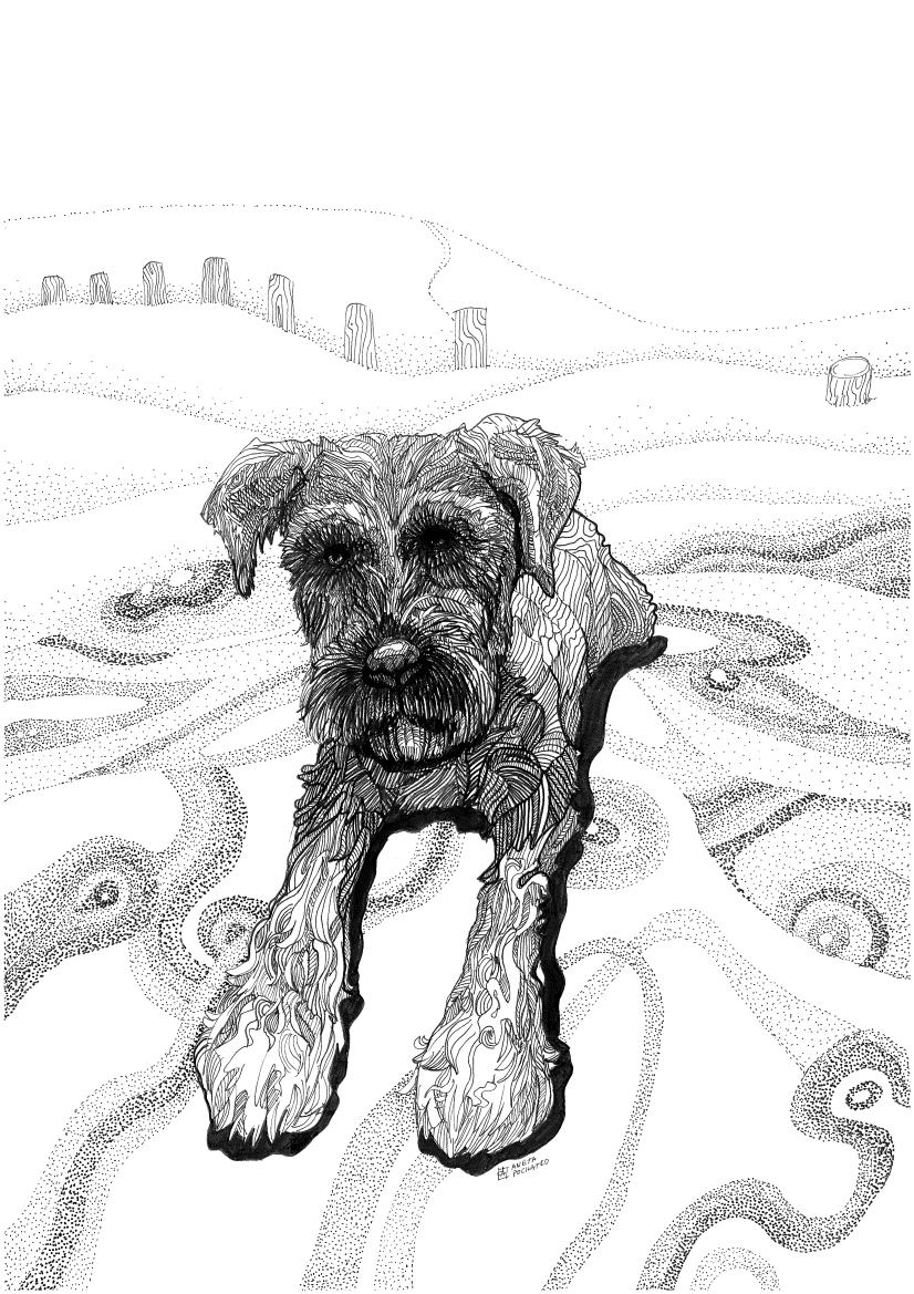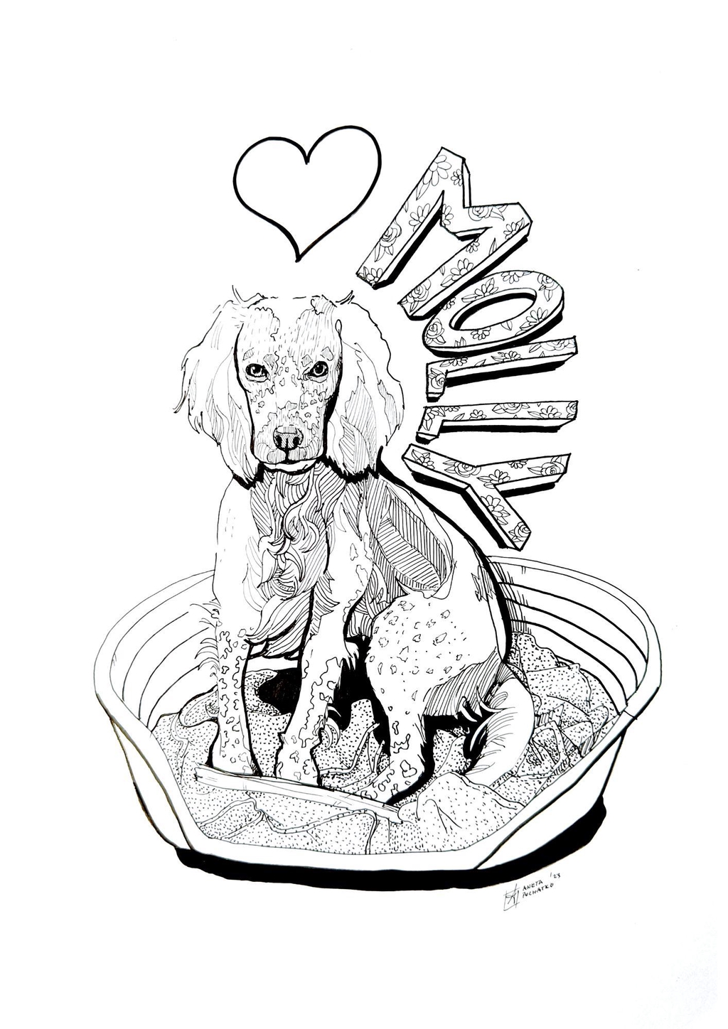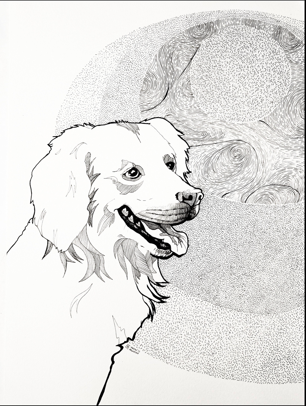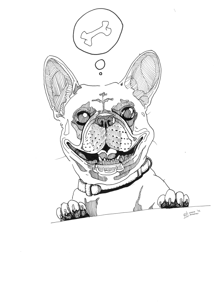 Intricate line work with precise strokes, seamlessly blending emotions while capturing the textures and essence of the subject in a playful yet elegant manner. To convey depth and intricate details, bold lines are skillfully combined with delicate dotting. This fusion of techniques interprets the subject’s form and surface with artistic finesse.