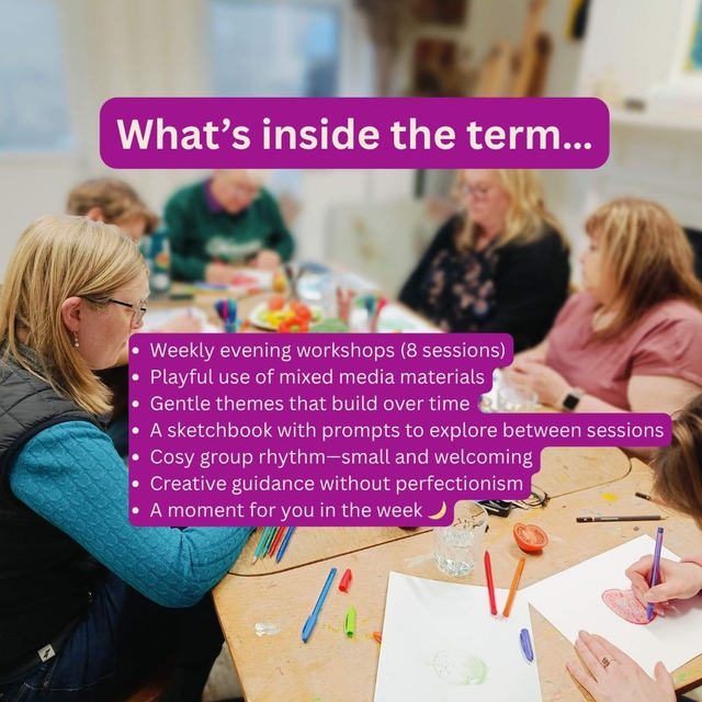This course is for all skill levels and is designed to inspire, encourage, and support your creative journey. Over the term, we’ll build momentum andevolve together - led by curiosity, guided prompts, and your own unique mark-making style.