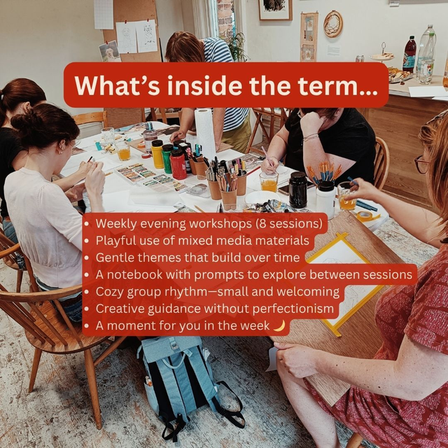 These evenings are crafted to nurture your personal momentum, curiosity, and trust in your creative voice. Whether you’re a seasoned maker or exploring your voice, you’ll find space here to breathe, notice, and create.